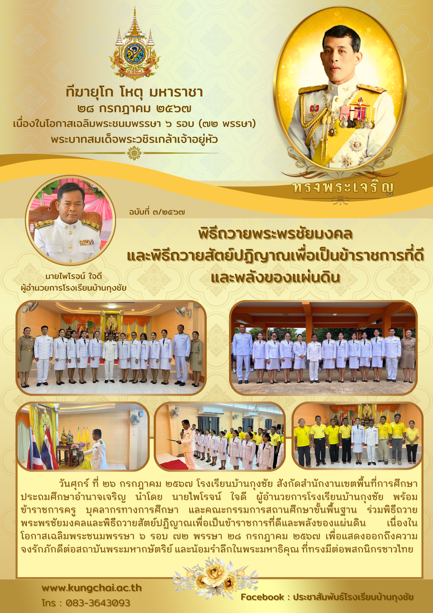 พิธีถวายพระพรชัยมงคลพระบาทสมเด็จพระเจ้าอยู่หัว และพิธีถวายสัตย์ปฏิญาณเพื่อเป็นข้าราชการที่ดีและพลังของแผ่นดิน เนื่องในโอกาสพระราชพิธีมหามงคลเฉลิมพระชนมพรรษา 6 รอบ 28 กรกฎาคม 2567