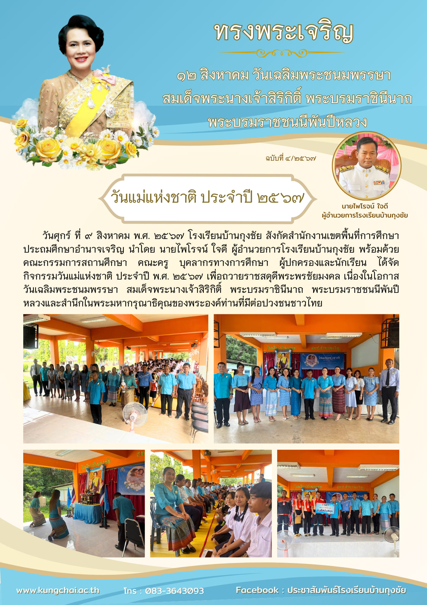 โรงเรียนบ้านกุงชัยจัดกิจกรรมวันแม่แห่งชาติ ประจำปี 2567 เพื่อถวายราชสดุดีพระพรชัยมงคล เนื่องในโอกาสวันเฉลิมพระชนมพรรษา สมเด็จพระนางเจ้าสิริกิต์ พระบรมราชชนนีพันปีหลวง