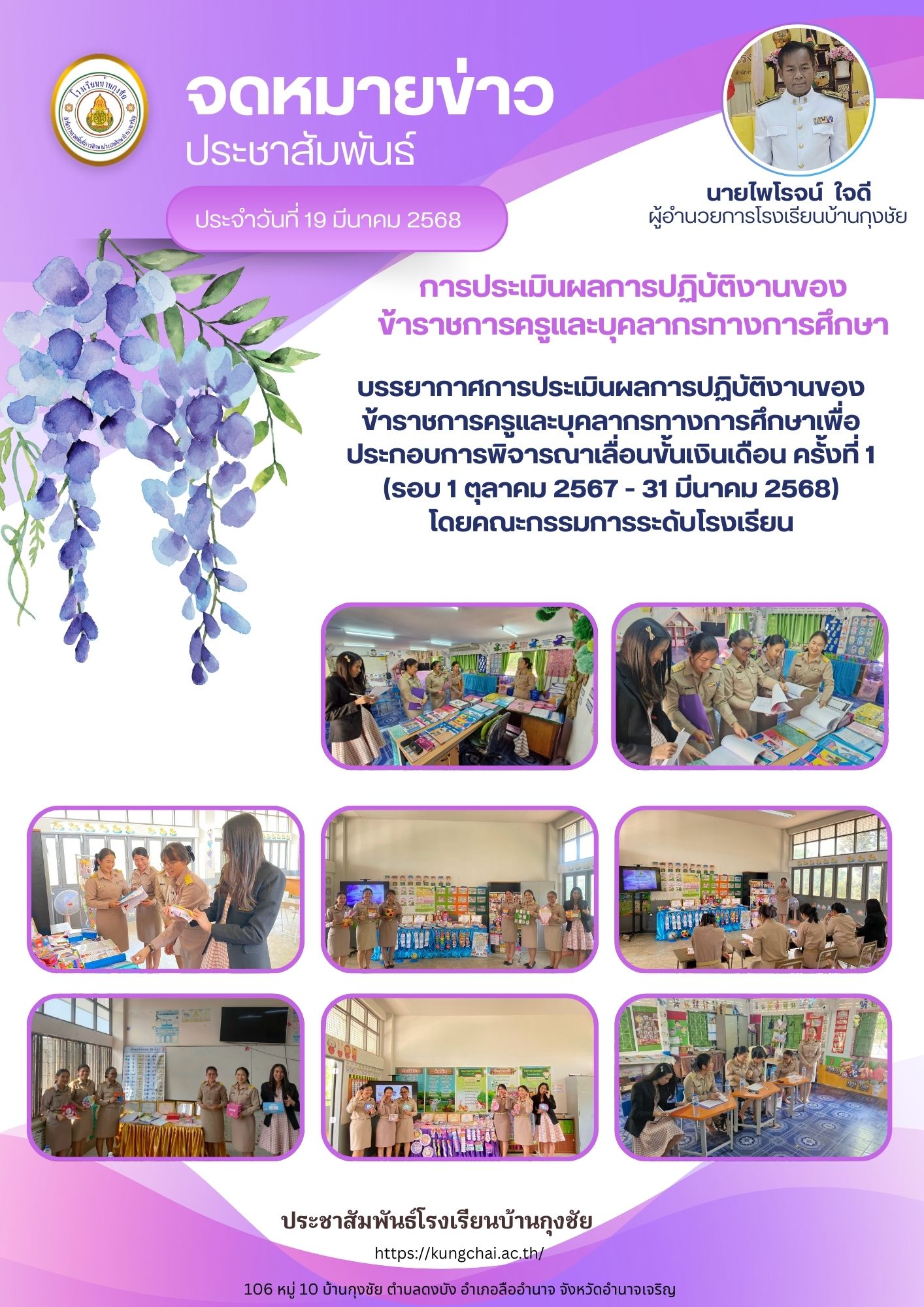 การประเมินผลการปฏิบัติงานของข้าราชการครูและบุคลากรทางการศึกษา เพื่อประกอบการพิจารณาเลื่อนขั้นเงินเดือน ครั้งที่ 1 (รอบ 1 ตุลาคม 2567 - 31 มีนาคม 2568)