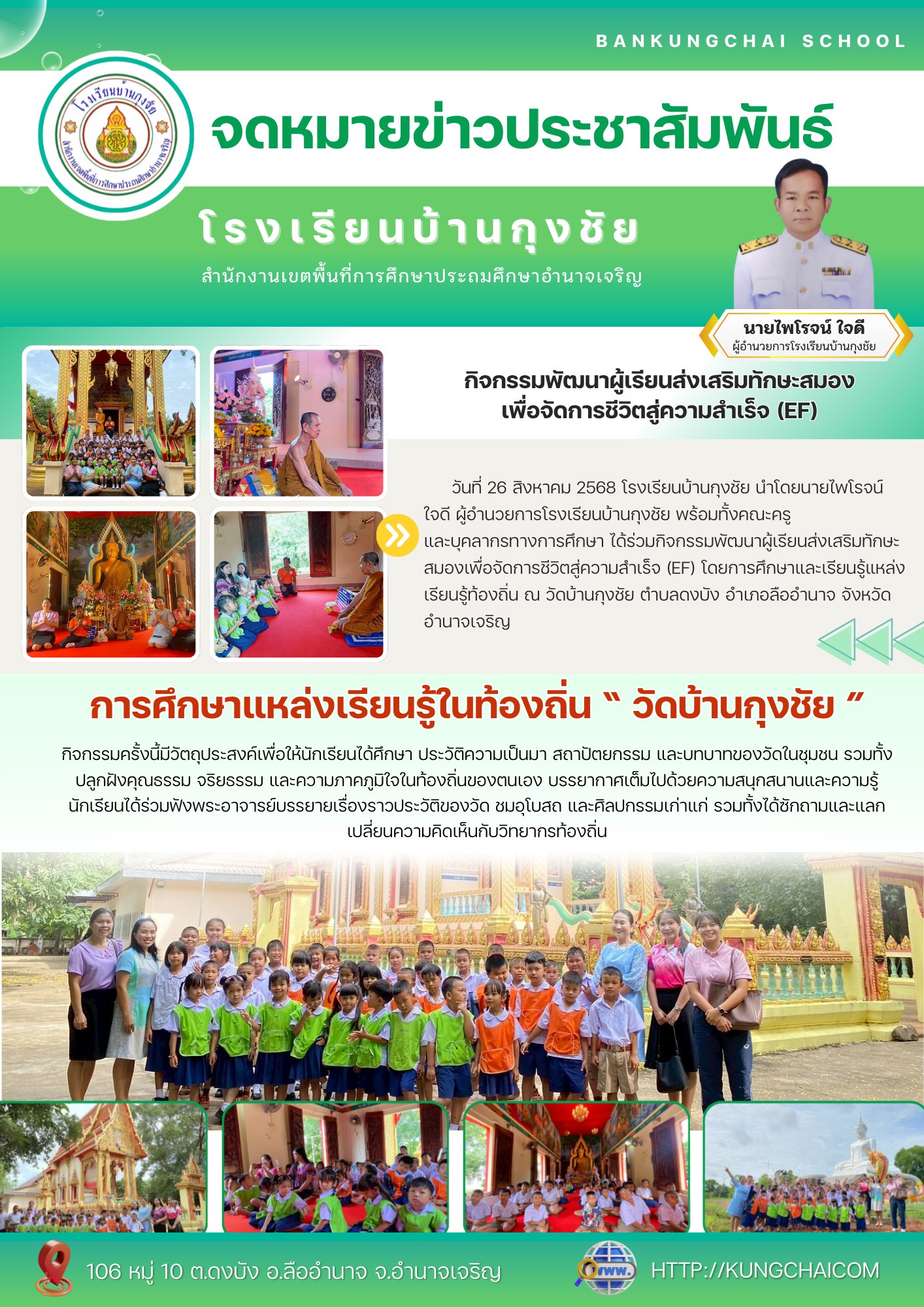 กิจกรรมพัฒนาผู้เรียนส่งเสริมทักษะสมองเพื่อจัดการชีวิตสู่ความสำเร็จ (EF) ด้วย การศึกษาแหล่งเรียนรู้ในท้องถิ่น "วัดบ้านกุงชัย"
