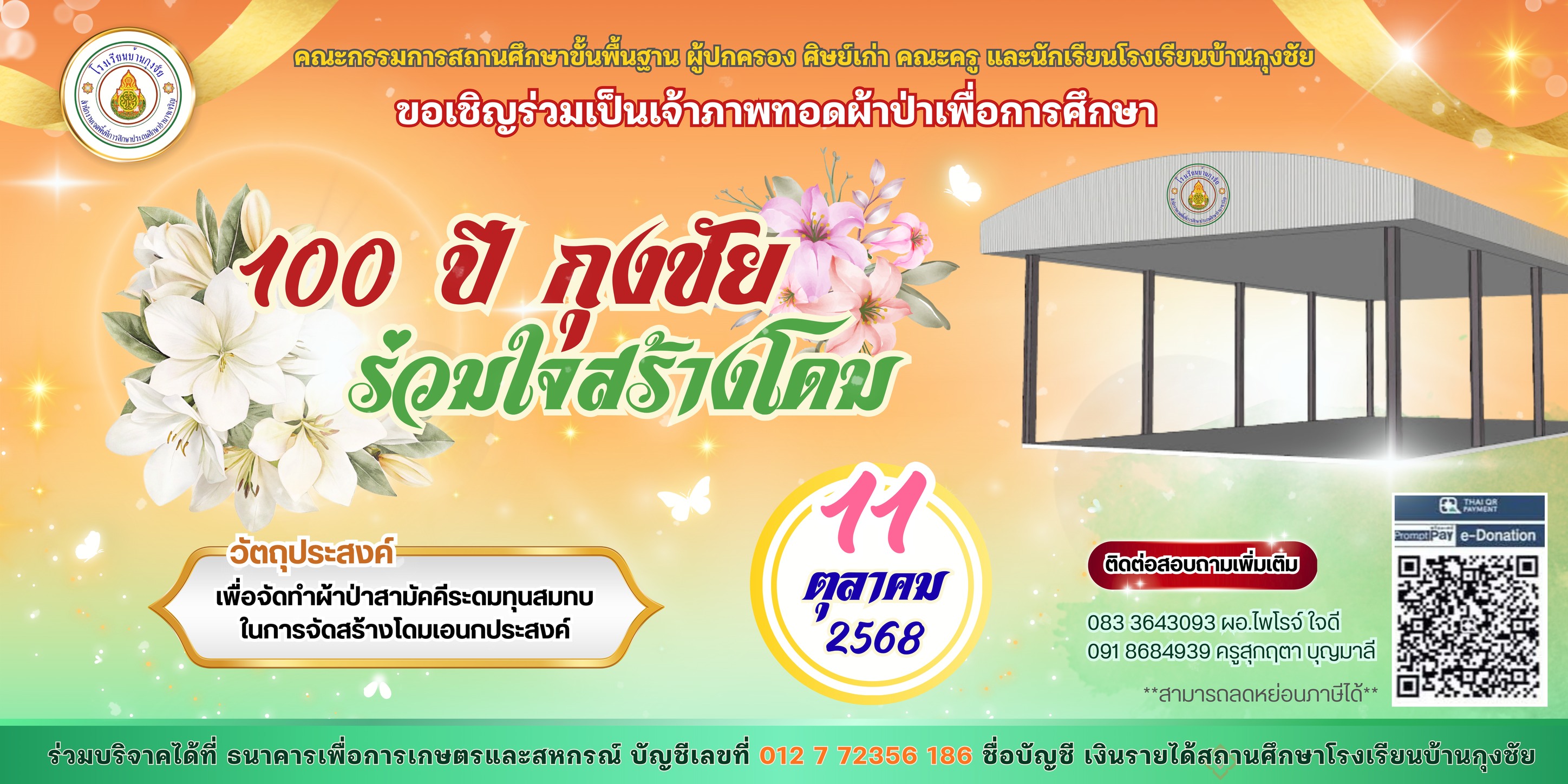 https://static.xx.fbcdn.net/images/emoji.php/v9/t19/1/16/1f49f.png" style="border-end-end-radius:0px; border-end-start-radius:0px; border-start-end-radius:0px; border-start-start-radius:0px; border:0px; height:16px; object-fit:fill; width:16px" />เพื่อจัดทำผ้าป่าสามัคคีระดมทุนสมทบในการจัดสร้างโดมเอนกประสงค์