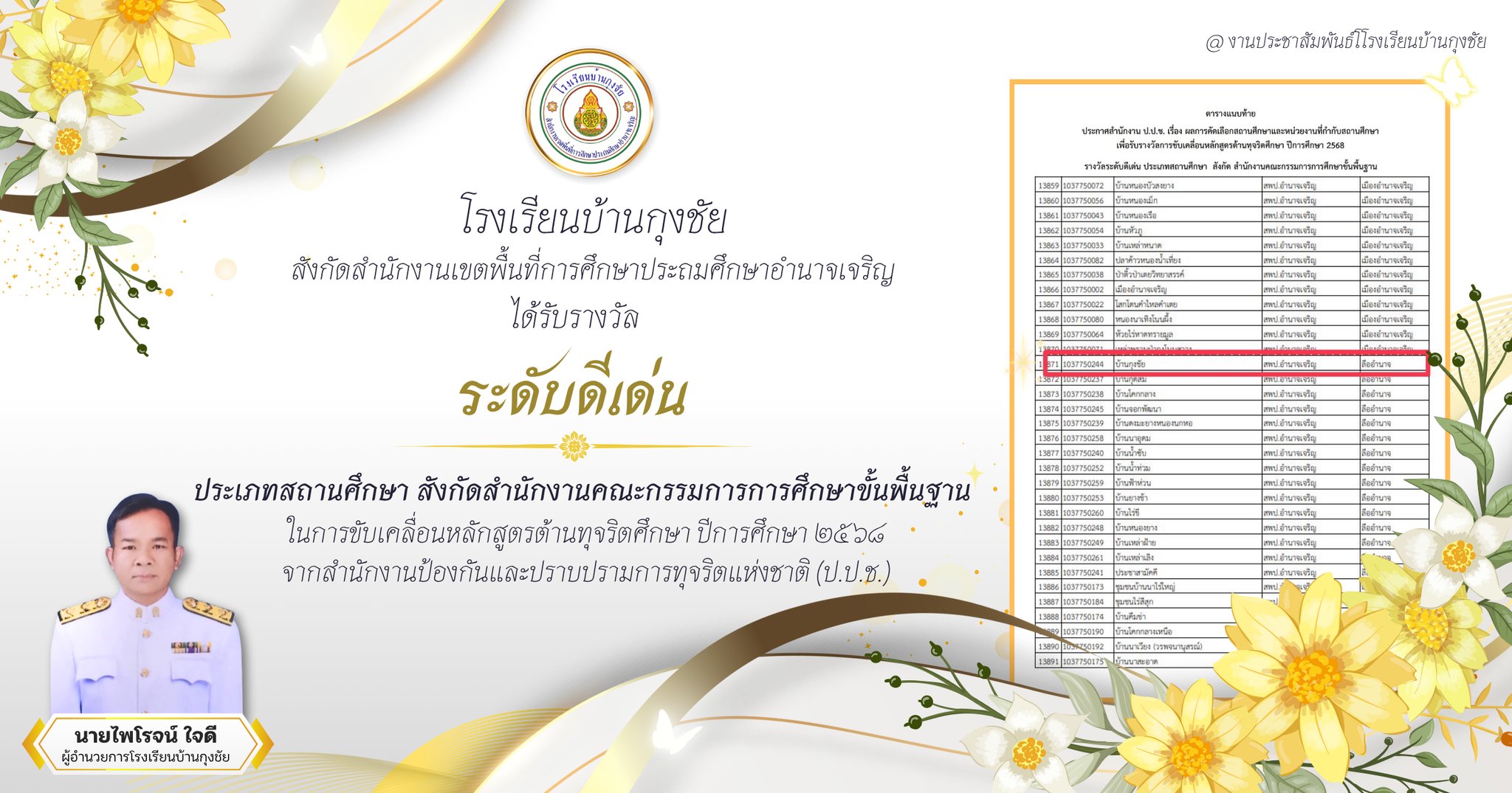 โรงเรียนบ้านกุงชัย สำนักงานเขตพื้นที่การศึกษาประถมศึกษาอำนาจเจริญ ยินดีต้อนรับ