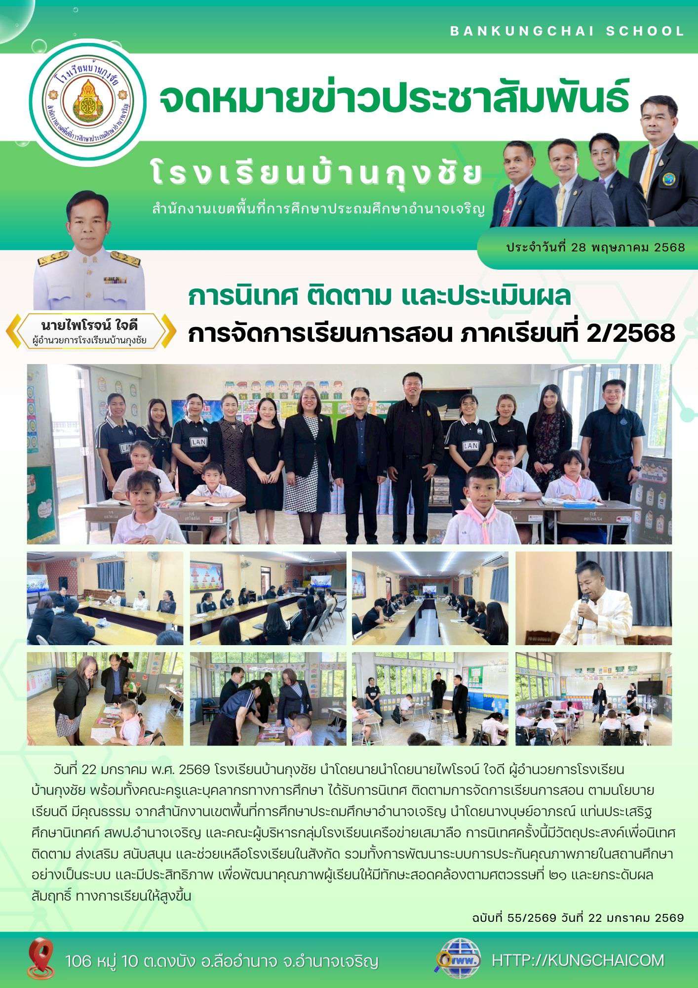 นำโดยนายนำโดยนายไพโรจน์ ใจดี ผู้อำนวยการโรงเรียนบ้านกุงชัย พร้อมทั้งคณะครูและบุคลากรทางการศึกษา ได้รับการนิเทศ ติดตามการจัดการเรียนการสอน ตามนโยบาย เรียนดี มีคุณธรรม จากสำนักงานเขตพื้นที่การศึกษาประถมศึกษาอำนาจเจริญ นำโดยนางบุษย์อาภรณ์ แท่นประเสริฐ ศึกษานิเทศก์ สพป.อำนาจเจริญ และคณะผู้บริหารกลุ่มโรงเรียนเครือข่ายเสมาลือ การนิเทศครั้งนี้มีวัตถุประสงค์เพื่อนิเทศ ติดตาม ส่งเสริม สนับสนุน และช่วยเหลือโรงเรียนในสังกัด รวมทั้งการพัฒนาระบบการประกันคุณภาพภายในสถานศึกษาอย่างเป็นระบบ และมีประสิทธิภาพ เพื่อพัฒนาคุณภาพผู้เรียนให้มีทักษะสอดคล้องตามศตวรรษที่ 21 และยกระดับผลสัมฤทธิ์ ทางการเรียนให้สูงขึ้น