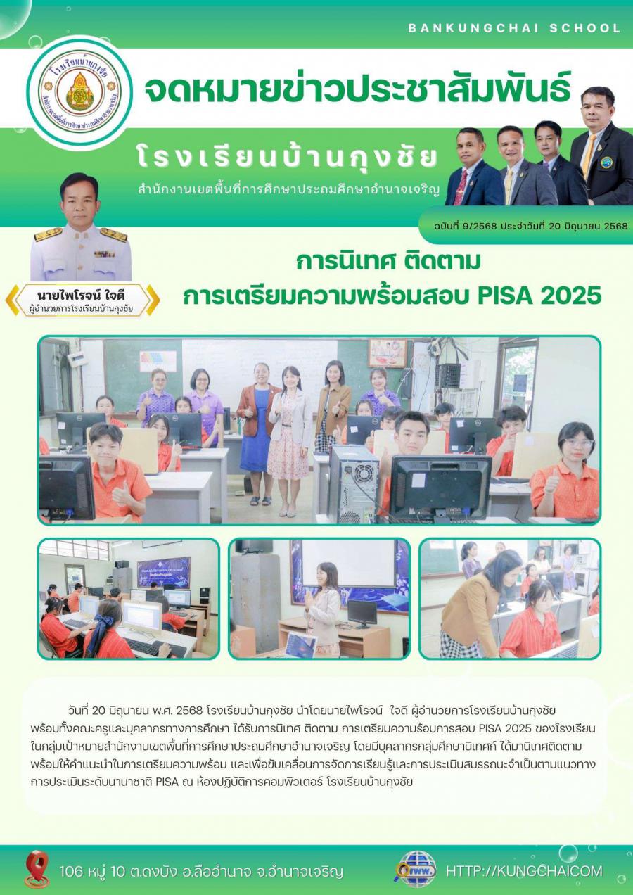 นำโดยนายไพโรจน์ ใจดี ผู้อำนวยการโรงเรียนบ้านกุงชัย พร้อมทั้งคณะครูและบุคลากรทางการศึกษา ได้รับการนิเทศ ติดตาม การเตรียมความร้อมการสอบ PISA 2025 ของโรงเรียนในกลุ่มเป้าหมายสำนักงานเขตพื้นที่การศึกษาประถมศึกษาอำนาจเจริญ โดยมีบุคลากรกลุ่มศึกษานิเทศก์ ได้มานิเทศติดตาม พร้อมให้คำแนะนำในการเตรียมความพร้อม และเพื่อขับเคลื่อนการจัดการเรียนรู้และการประเมินสมรรถนะจำเป็นตามแนวทางการประเมินระดับนานาชาติ PISA ณ ห้องปฏิบัติการคอมพิวเตอร์ โรงเรียนบ้านกุงชัย